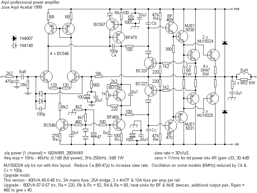Arjol professional power amplifierJose Arjol Acebal considered the need for rugged design for some professional applications (data courtesy of Nagarajah Shanmugam). A common board that upgrades easily (in this case to 400W/4R) is desirable for PAs and this design embodies what most would call good practice.