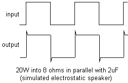 When driven by a signal with sharp rise and fall times like a square wave 'overshoot' can be observed.