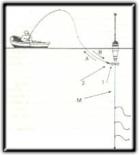 boya, el (2) marca el nudo corredizo que se usa para variar la