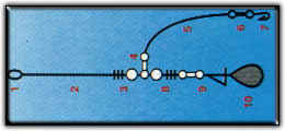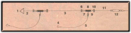 con esmerillón para plomada y nudo corredizo; 4. Anzuelo N° 12/0