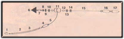 entre plomada y esmerillon 5 cm; 7. Rotor N°5 o esmerillon; 8. Perla