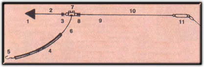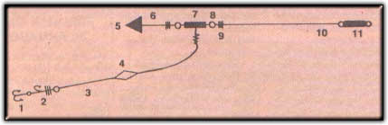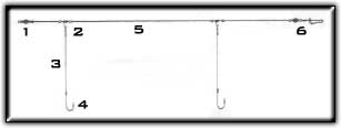 ó 13/0 serie Tartuna 7690; 5. Entre mosquetón y anzuelo, 60 cm; 6. Tubito