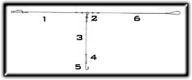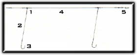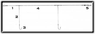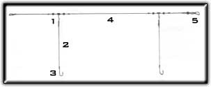 del 0,60 y 45 cm de longitud; 4. Anzuelo N° 2/0 ó 3/0; 5.