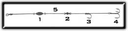 Plomito corredizo 40 grs; 2. Esmerillón N° 3; 3. Anzuelo