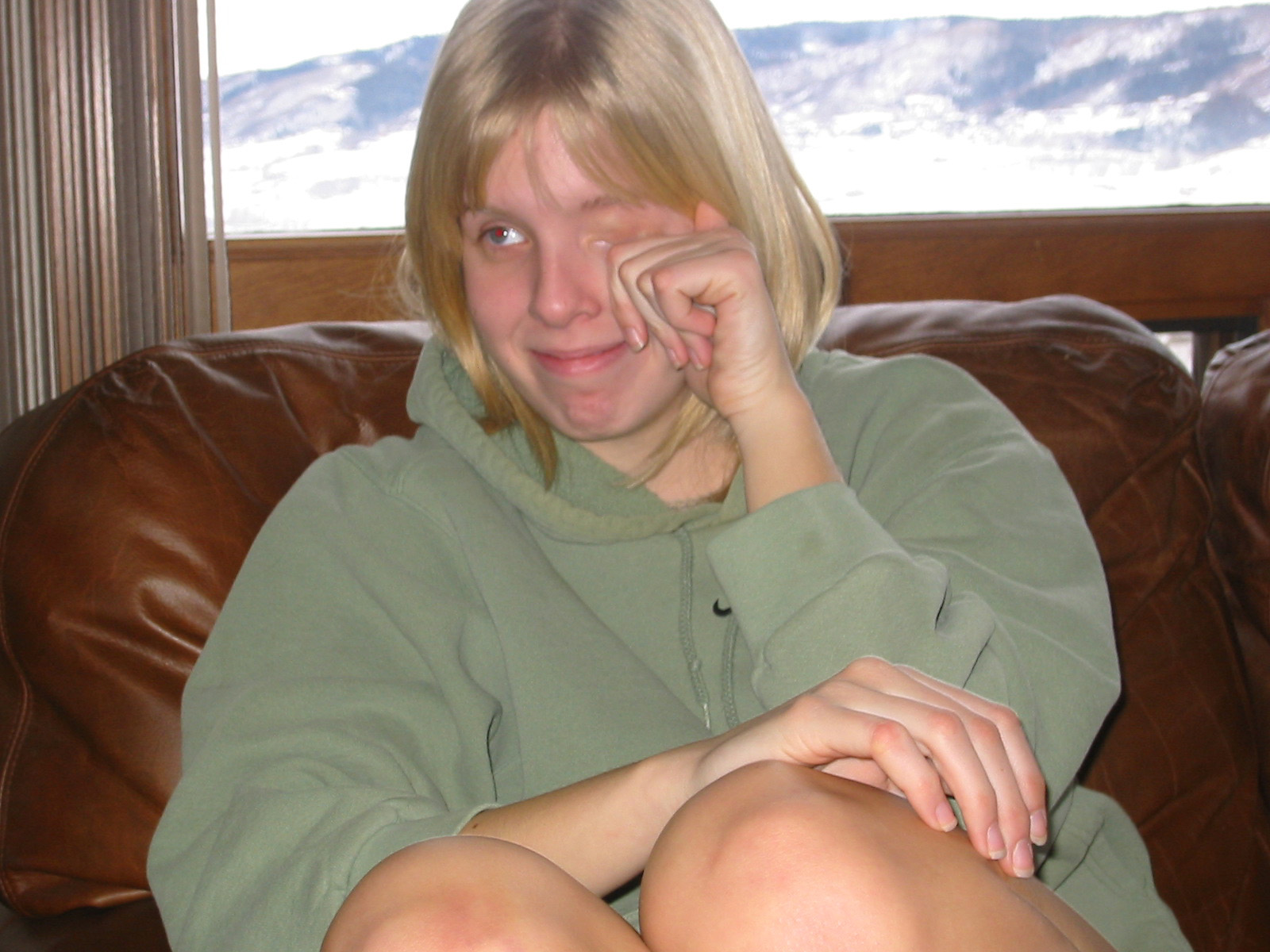 Jessica, being silly, as usual. i gave her a bumper sticker that says, "caution: blonde thinking" b/c i think she needs to focus more on her surroundings. She is probably going to Montana State U next year and major in Graphic Design or art or something.