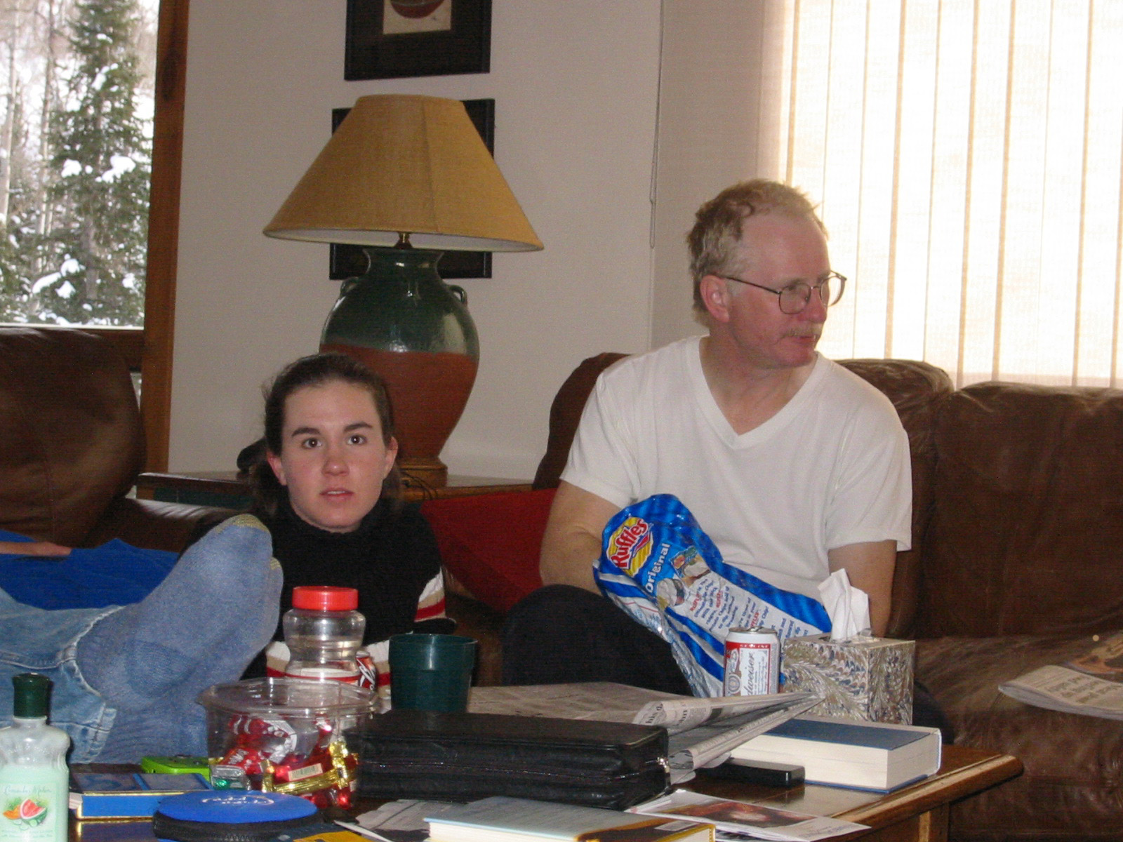 Me, looking weird as usual, and Dad. Most of these indoors pictures are us sitting around the living room. nice leather couches, warm fireplace, very small tv. we constantly watched TLC. saw the same episode of "While you were out" 3 times.