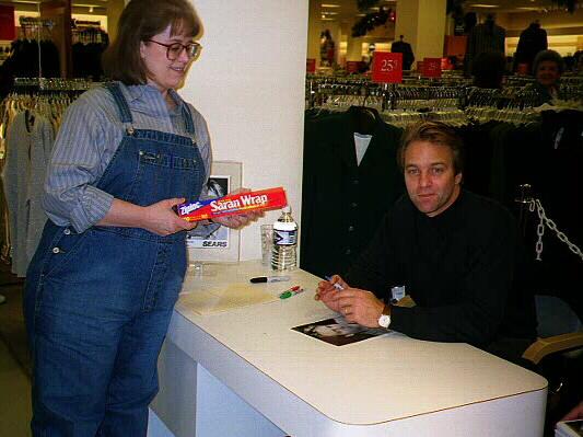 After that, since we would be seeing Roark the next day at Sears in Kenosha, I told Dazz that I must get a box of Saran Wrap for Roark to sign, which we went out and picked up. I also had Saran Wrap Vignette #5 that I just posted with me because I had printed it out for the others to read if they wanted to. I thought, hmmm… should I maybe give this to Roark, so he can see what I’m talking about? No, no, that would be absolutely ridiculous. Well, maybe he’d get a kick out of it. No, that’s silly; he’d just realize how strange I am. Back in the hotel, I then found I had the REST of the vignettes with me in my ‘stuff’ to do with this board that I keep in a binder. Gosh, it would make more sense if I gave him the whole set, wouldn’t it? Hmmm… Well, I better not...