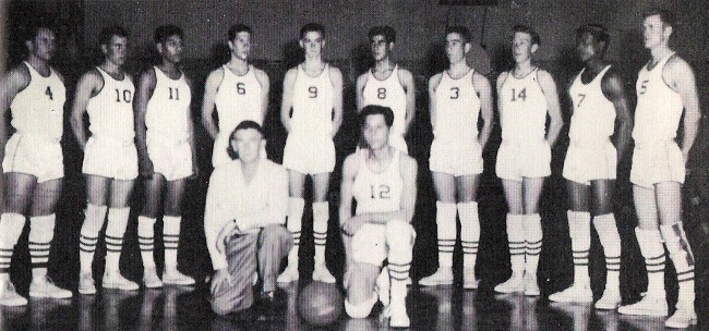 Ernie Muro Sr. was the Captain of the 1953-54 Warrior varsity basketball team. Muro (#12 above), kneeling alongside coach John Goodell,