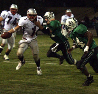 Warrior defenders zero in on a Liberty High running back. The Warriors won the 2001 contest on the Mountain, 7-6.