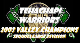 The 2003 Warriors are the Valley Champions of the Sequoia Division Large Schools.