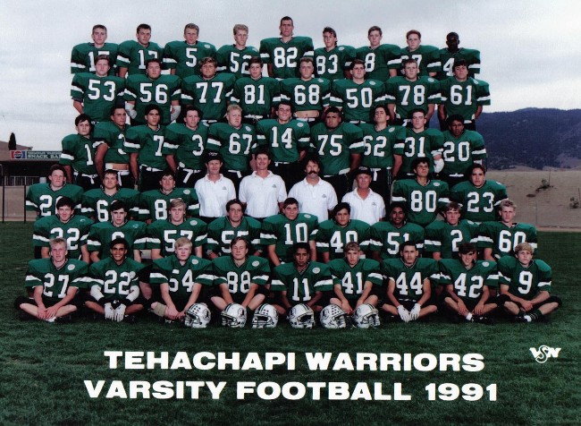 For the fifth consecutive year, the Warriors advanced to the CIF Division IX championship game! The 1991 season would also mark the final year that the Warriors would participate in the Desert-Inyo League. In recent years, Warrior sports teams were dominating league play, due in part, to a booming school enrollment. The Warriors would move to a new CIF section and a new league in 1992. The new section would be the CIF Central Section (San Joaquin Valley) and the new league was the bigger and more competitive South Sequoia League (SSL). In recent years, the Warriors have been playing a number of SSL schools in non-league games (Garces, Wasco, Shafter, etc.).