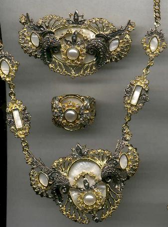 WHITE SAPPHIRES MOTHER OF PEARL IMITATION "LA MARQUISA" collection BROOCH M2224 $159 RING M2224 $59 NECKLACE M2236 $229 EARRINGS M2224 $135 |