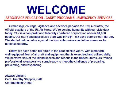AEROSPACE EDUCATION CADET PROGRAMS OPERATIONS NEWS & ISSUES JOIN CAP WING HEADQUARTERS NATIONAL HEADQUARTERS