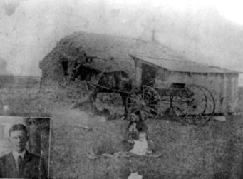 Yet not all! David Guth--brave young man!--trekking west, he left Wisconsin. To Dakota Territory bison trails ran. Parting from the last of kin, he found a choice spot to settle in. For fuel bison "chips". Water? Nothing that a pick can't win. From thick sod he shelter rips. All else he brought along on trips.