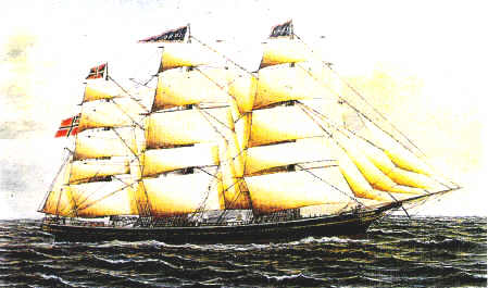 Sjur and Oline and four children departed from Norway to America (via Canada) on BRODRENE, a Norwegian bark or barque, a wooden ship with fixed sails.