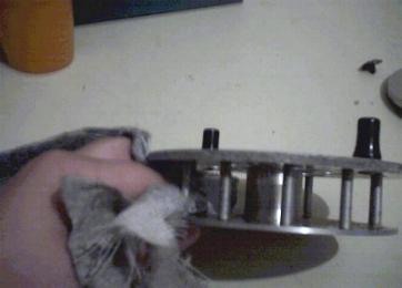 a beaker with warm soapy water in it and a toothbrush (not your partners !!) and a lint free cloth,use the toothbrush to give the spool a good scrubbing all over