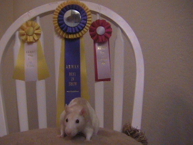 She is a beautiful Seal Point Siamese we got from our friend Casey over at Romeo's Rat Crew. We will definately use her to improve our Siamese line. She's sweet tempered and adventurous.