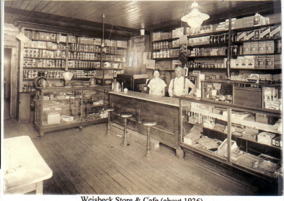 Faulden Weisbeck and daughter Orpha inside store and cafe. About 1936
