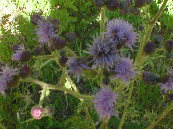 of Thistles, which are just flowering, and Scarlet Paintbrush, just blooming. |
