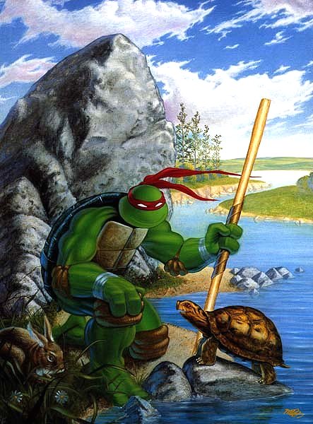 fighting ninjas or whatever. Of all the turtles, he rebels most strongly against killing, and