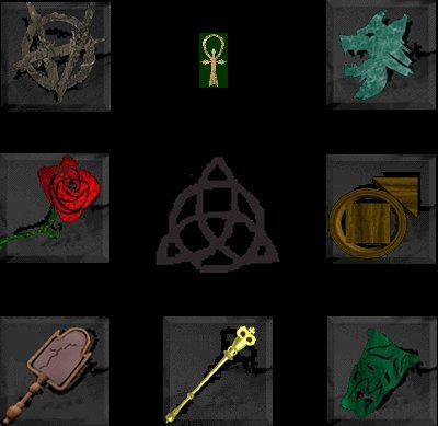 THE MALKAVIANS-Insane tricksters and wild geniuses, Clan Malkavian is bound only by one thing, their insanity. While it would be nice to assume that all Malkavians are no better than the doped up loons locked away in institutions, the reality is far more frightening. While they may be insane, they suffer from a wide variety of psychological disorders (or gifts of Malkav, if you ask them). Anything from extreme paranoia (think Conspiracy Theory), to homicidal detachment (Hannibal Lecter?), to Multiple Personality Disorder can be found in this clan. Their insanity unifies them in a strange unspoken net called the Malkavian Madness Network, and these "Kooks" or "Freaks" or what ever you might call them have a good standing with the Fey, the faerie kin.