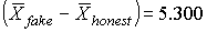 - Compute the sample means for both groups (‘fake’ and ‘honest’).