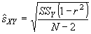 (In Chapter 5, there was a formula for computing the SE of estimate (used only for amount of error in prediction in the sample), but the above formula is in Chapter 14 and is for calculating estimated SE of estimate (used for determining amount of error in predicting Y from the equation for people beyond what is in the sample), and this is the formula you should use for exam. The difference between the two formulas is analogous to the difference between the formula for standard deviation and your standard deviation estimate.)
