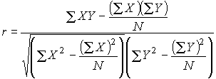 Computational formula for r: (The book also goes through the definitional formula in detail. This can aid in understanding the calculations, but I am going to get right to the computational formula.)