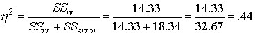 - Since we are able to separate out the variability due to individual differences (SSacross subjects), we can compute our eta-squared more precisely by using SSiv + SSerror in the denominator rather than SStotal