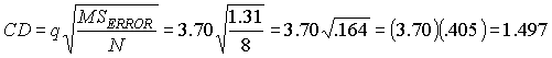 - We already know MSerror and N – we get q (Studentized range value) from Appendix G (p. 592):