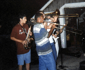 Scott blaring his trombone with Stephen of Road to Damascus on trumpet at Istrouma.