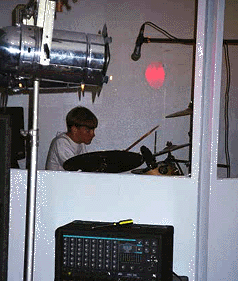 6. Matt playing in the back with Paul holding the mic for Sarah and Laura