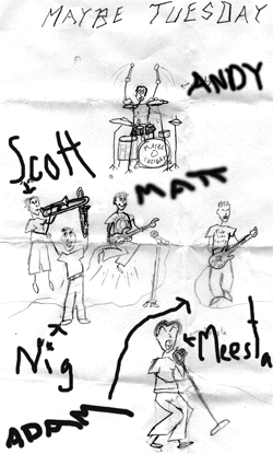 2. (Left to right) Nick (good friend of the band), Zach (another friend), Andy, Paul (retired vocalist), Matt