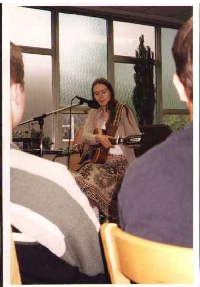 sarah playing at the launch of aden bowman's student writing anthology, "inkslinger".