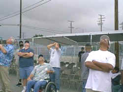 You know how when one person is looking up everyone looks up to see what they are looling at? Now what do you think they are looking at? Your right pigeons. It was 8:10am and Milton had just released the #1 kit which as you know are the best 20 birds left in the Classic. After starting with 80 birds only 60 were left and this was the top 20 flying. As we all watched the kit an entry of Richard Espinoza was taken away by a hawk. Its a good thing all the judging was allready over. |