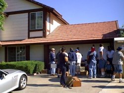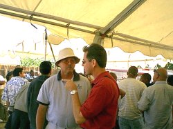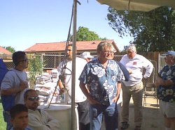 June 1, 2002 the day of the California Classic. As we turned up Willies street we could see the winds where high and we may not see the birds fly. The house had a crowd in front, I could see some old friends in line requesting there birds . |