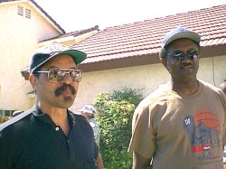 When I come to these events I always see someone I hadn't seen in years. This time was no different as I entered the backyard there stood Pete Muraviov ( Pete the Russian). All though the 80's Pete his brother Mike and I flew competition with the M.C.R.C. (Mid City Roller Club) along with Kevin Adams standing to the left with the pipe in his mouth. |