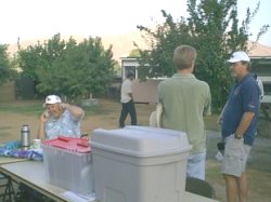 | As I Walked up I could see the Bar B Q pit on the trailer. Jerry was sitting at the table talking on the phone and greeting us as we came in. Talk to you later I'm going to walk around and take some pictures. |