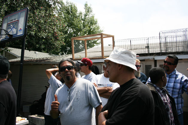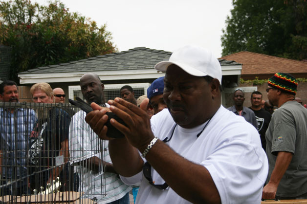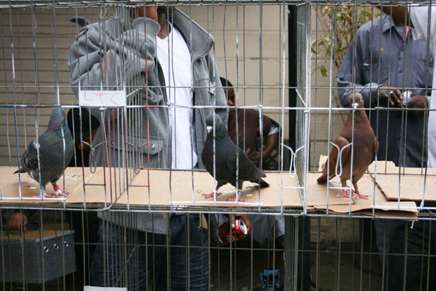 As I walked in the gate I could smell the food cooking Raul was on the mike telling us all what to expect. The show would be starting soon and the raffle would be some what different. $1.00 can get you a bird in the raffle, a six pair breeder pin, and a kit box along with all the feed and other supplies for the loft. |