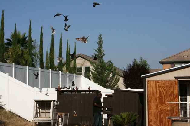 Today Dominique and I went to Robert Parkers house to see his birds fly. I don't know how long I've known Robert but its a long time and always a pleasure to see him and watch his birds fly. It was a good day to talk bird talk.