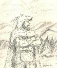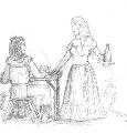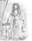 This is a scene from an inn with a barmaid and a happy customer. This picture is not finished, but I scanned it since I'll probably ruin it when adding the rest and when trying to shade a bit more..