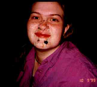 This is me after I stuck my face in the cake. Becky suggested it, thinking it would make me feel better. It did. But I was picking icing out of my eyebrows for hours.