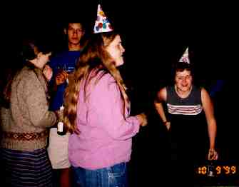Here is me and some party guests. L to R: Sarah, Kris, Me, Julie (who seems to be having some back problems or something...)