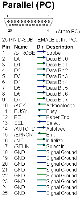 On peut connecter directement les entrées au port imprimante (attention en cas de court circuit !) via une résistance (optionnelle). Je n'ai jamais eu de problème, mais faites attention si vous n'êtes pas sûr de ce que vous faites!