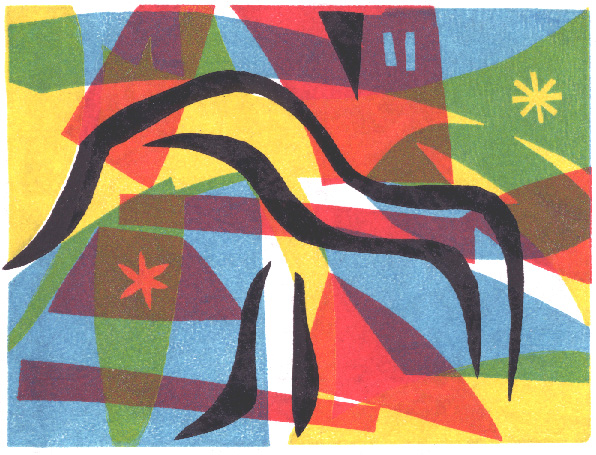 ”Bridge”(linoleum block print)(15 x 20 cm.)$150(All prints hand-printed on fine-quality graphic arts paper) Back to prints page