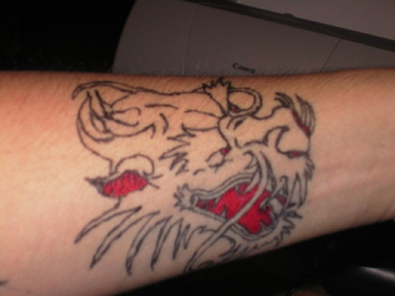 One day I was at Marco working. I got very bored covering for someone on vacation. So I drew this on my arm for fun. Dual colours and it was very cool. I was happy with it. My boss was not. |