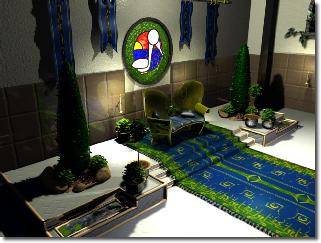 This one has taken me a while to do simply because my computer is sooo slow. All the textures in this scene were designed entirely on my computer however I prefer to derive textures from photos or scanned images like in the storage room. As a result some textures look a little artificial.