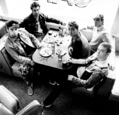 Ah, the lovely cover shot. Of course Justin is front and center, but I think Lance is the scene-stealer of this picture with his "I love you, don't touch me" gesture.