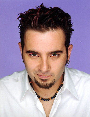 This is the Chris picture that ended up on the cover, although I would have definitely voted for the other one. Don't get me wrong, he looks very pretty here and all, and the screaming thing is pretty cute, but the other one just screams 'liquid sex', dammit!