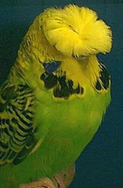 Aparición: Arriba izquierda: Crestado Circular Completo Verde Oliva Es posible producir tres formas distintas de crestados; Crestado Circular Completo, Crestado Semicircular y Penacho. El crestado circular completo posee una cresta uniforme colocada en el centro de la cabeza, alcanzando aunque sin llegar a taparlos ojos y cera. Este efecto recuerda al del Canario Corona Gloster. Los periquitos crestados han despertado relativamente poco interés y siguen siendo bastante raros. No obstante estas formas crestadas pueden mezclarse con cualquier color o variedad, por lo que ofrecen un amplio campo de trabajo para el criador. Los periquitos crestados NO deben aparearse juntos sino con stock normal. Los periquitos crestados son de carácter dominante por lo que se reproducen con facilidad, sin embargo a pesar de su indiscutible belleza existe un factor letal, los periquitos crestados no deben de acoplarse entre ellos ya que esto conllevaría a una disminución de la fertilidad, obteniendo un menor numero de polluelos, debido a que cierto porcentaje de los polluelos no son viables. Por esta razón los TODOS los periquitos crestados deben acoplarse con periquitos normales, aunque también es posible obtenerlos en toda la gama de colores desde, verdes, hasta grises; y en todas las variedades desde opalinos pasando spangles, y píos, hasta canelas, incluso albinos, lutinos, etc.